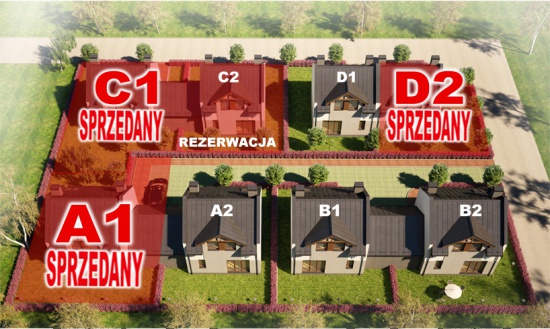 Osiedle składa się z 8 domów w zabudowie bliźniaczej. Niniejsze ogłoszenie dotyczy domu z dwoma miejscami parkingowymi - bez garażu.